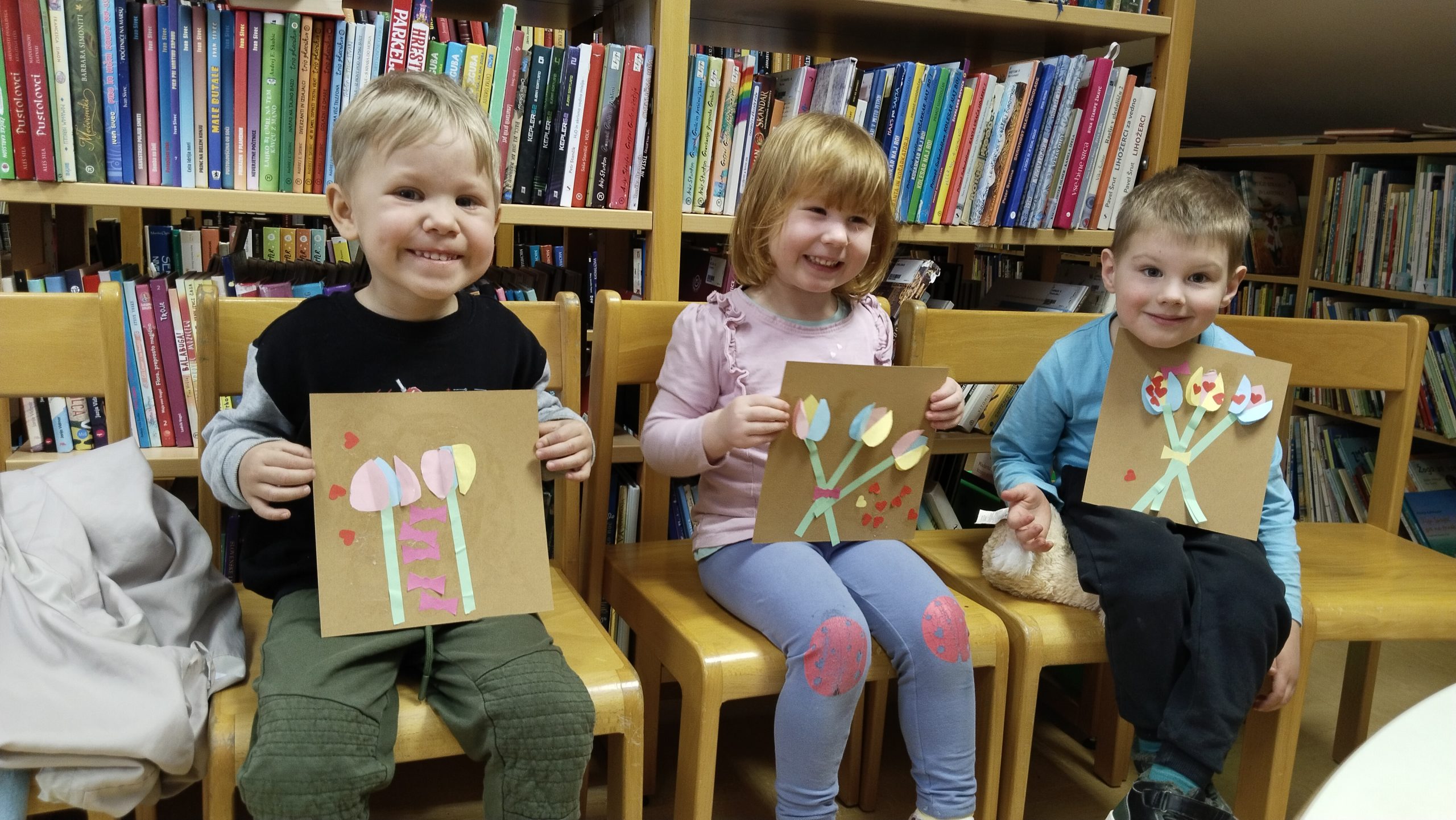 V knjižnici Dvor smo v mesecu marcu pripravili posebno pravljično urico in ustvarjalno delavnico, na kateri so otroci z veliko mero ustvarjalnosti izdelovali slike s šopki rožic, ki so jih podarili svojim mamicam kot izraz hvaležnosti in ljubezni.