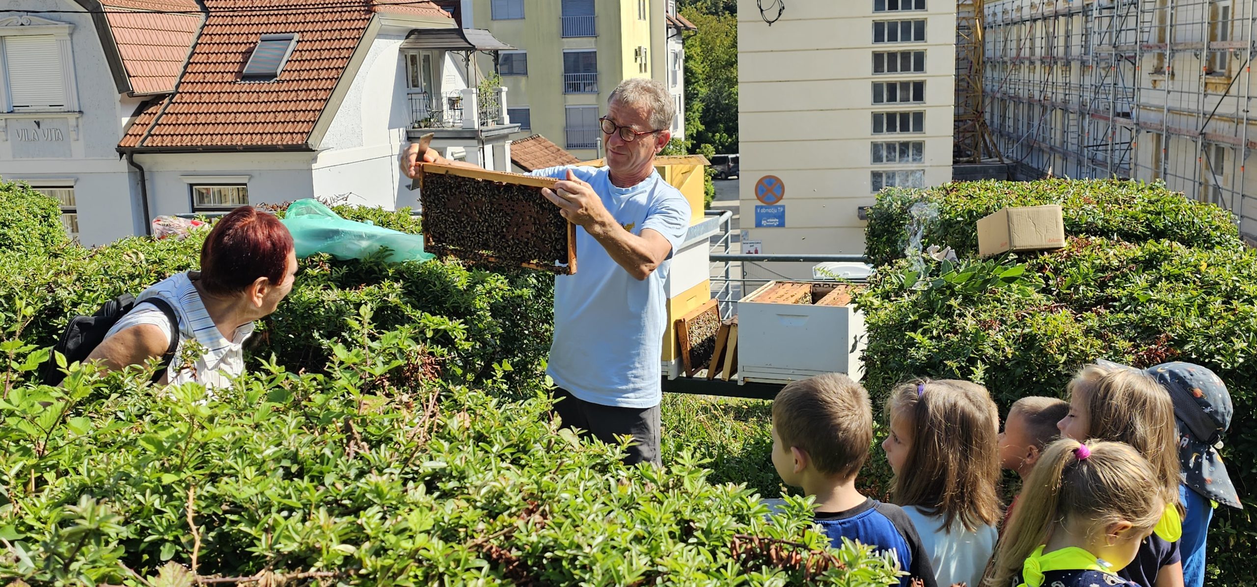 Ste vedeli, da imamo ob knjižnici tri čebelje panje in svoj med?