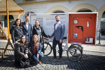 Novo storitev smo javnosti uradno predstavili na novinarski konferenci v sklopu dogajanja ob svetovnem dnevu Zemlje. Hkrati smo na novomeškem Glavnem trgu obiskovalcem in mimoidočim prvič pokazali še premično enoto Knjižnice reči Novo mesto, ki sta jo zasnovala oblikovalca Natalija Zanoški in Darko Plevnik in je pritegnila številne poglede. Gre za predelan tricikel s kovinsko konstrukcijo, v katero je vgrajena lesena omara, kjer se nahaja izbor reprezentativnih predmetov iz knjižnice reči. Del kovinske konstrukcije je tudi rolo s ključnimi informacijami o knjižnici reči. Glavni namen premične enote knjižnice reči je promocija, saj na ta način lahko predstavljamo knjižnico reči tako v prostorih knjižnice kot izven nje.