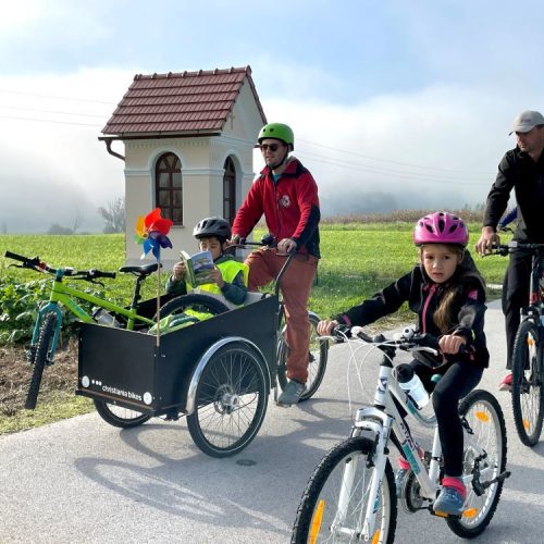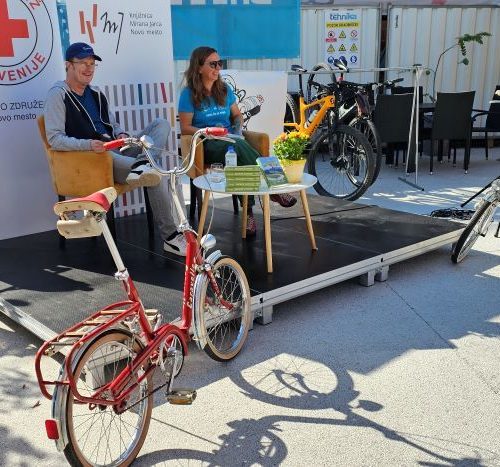 Ob evropskem tednu mobilnosti smo v Knjižnici Mirana Jarca Novo mesto v sklopu certifikata Kolesarju prijazni skupaj s partnerji pripravili kolesarjenje od Novega mesta do Šmarjete. Na Karlovškovem trgu v Šmarjeti smo pripravili pogovor s Tadejem Golobom o njegovem kolesarskem vodniku Pikčasta Slovenija.