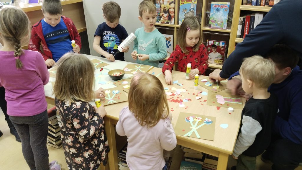 V knjižnici Dvor smo v mesecu marcu pripravili posebno pravljično urico, posvečeno dvema praznikoma – dnevu žena in materinskemu dnevu. Otroci so prisluhnili nežni in ganljivi zgodbi o mami in Miku, ki govori o neskončni ljubezni med staršem in otrokom. Skozi pravljične podobe so odkrivali, kako velika je lahko ljubezen – tako velika, da jo lahko primerjamo z neštetimi zvezdami na nebu ali s srebrnimi ribami v reki.