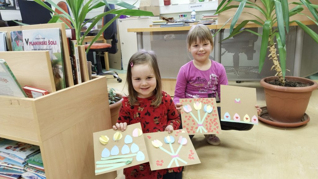 Po poslušanju pravljice je sledila ustvarjalna delavnica. Otroci so z veseljem in veliko mero ustvarjalnosti izdelovali slike s šopki rožic, ki so jih podarili svojim mamicam kot izraz hvaležnosti in ljubezni.