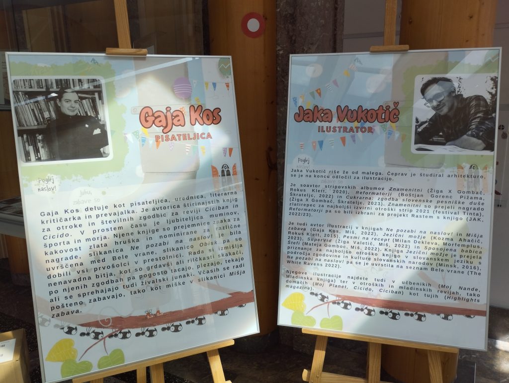 Letošnji mladinski literarni festival Bralnice pod slamnikom spremlja razstava ilustracij Jake Vukotiča. Miški Rita in Mici sta svojo prvo vlogo dobili v slikanici Ne pozabi na naslov!, ki se je uvrstila tudi na seznam Bele vrane, ki ga pripravlja Mednarodna knjižnica za mladinsko književnost v Münchnu. Miški sta si v prejšnji slikanici zaželeli, da bi nastopili še v eni – tokrat v taki zgodbi, ki ima glavo in rep. Želja se jima je uresničila. V Mišji zabavi je kar nekaj glav in repov, ker v njej nastopa veliko miši in dva mačka.