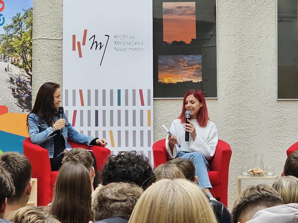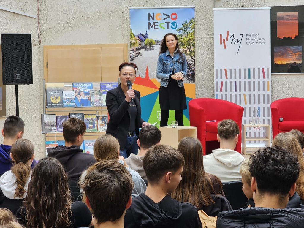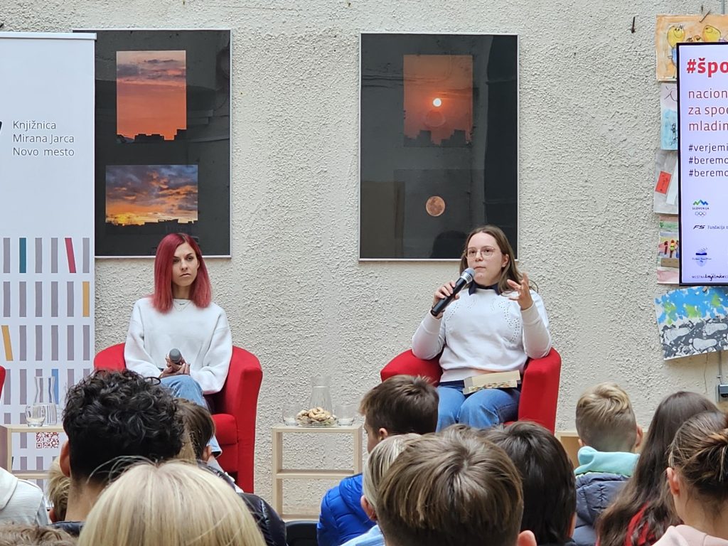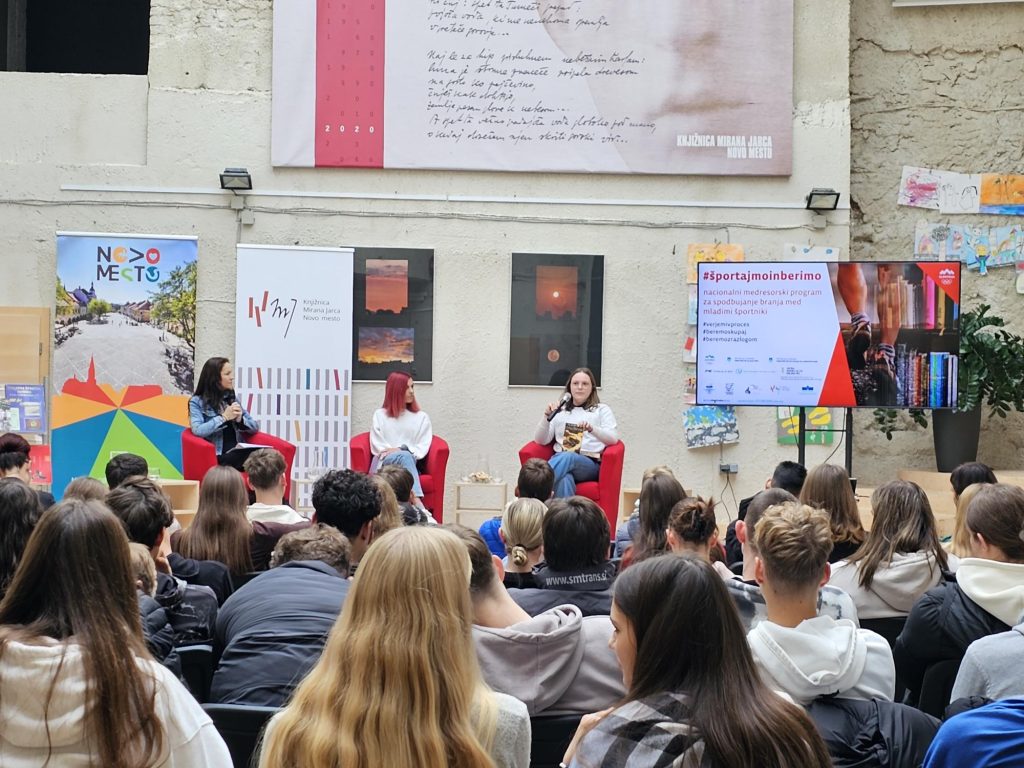 Dogodek iz cikla #športajmoinberimo je mladim športnicam in športnikom novomeške gimnazije ter ekonomske šole približal svet branja skozi navdihujoči dialog s športom. Na srečanju sta svoji zgodbi in svojo ljubezen do knjig z dijaki delili vrhunski športnici – olimpijki: atletinja Klara Lukan in lokostrelka Žana Pintarič.